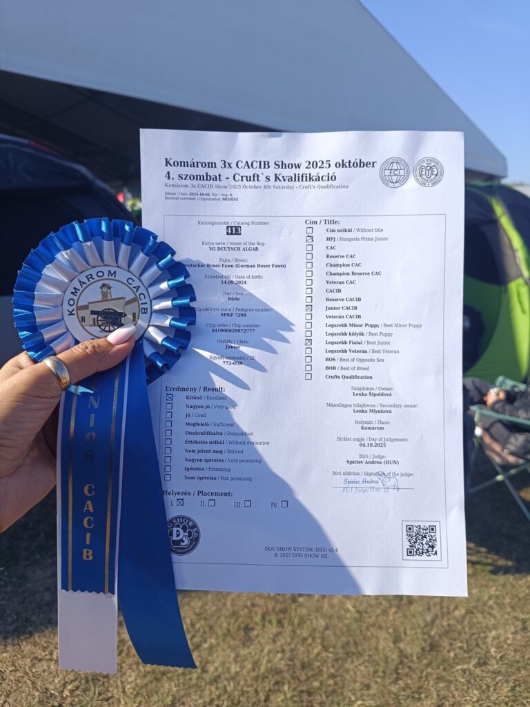 VG Deutsch Algar – Junior class – Excellent 1, CAJC, Junior CACIB, Junior BOB, JUNIOR BEST IN GROUP FCI II ![]()