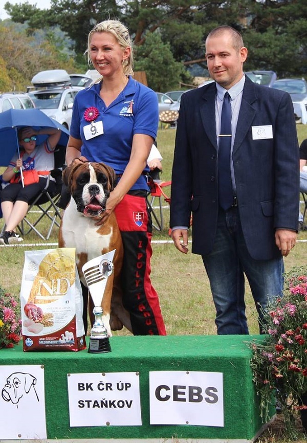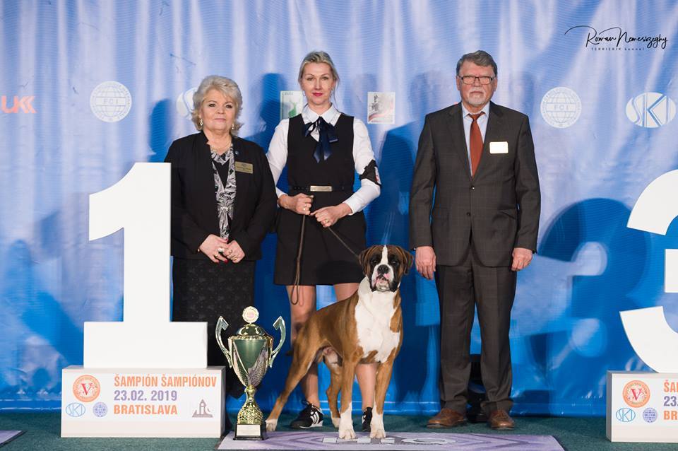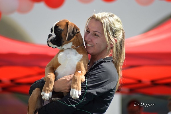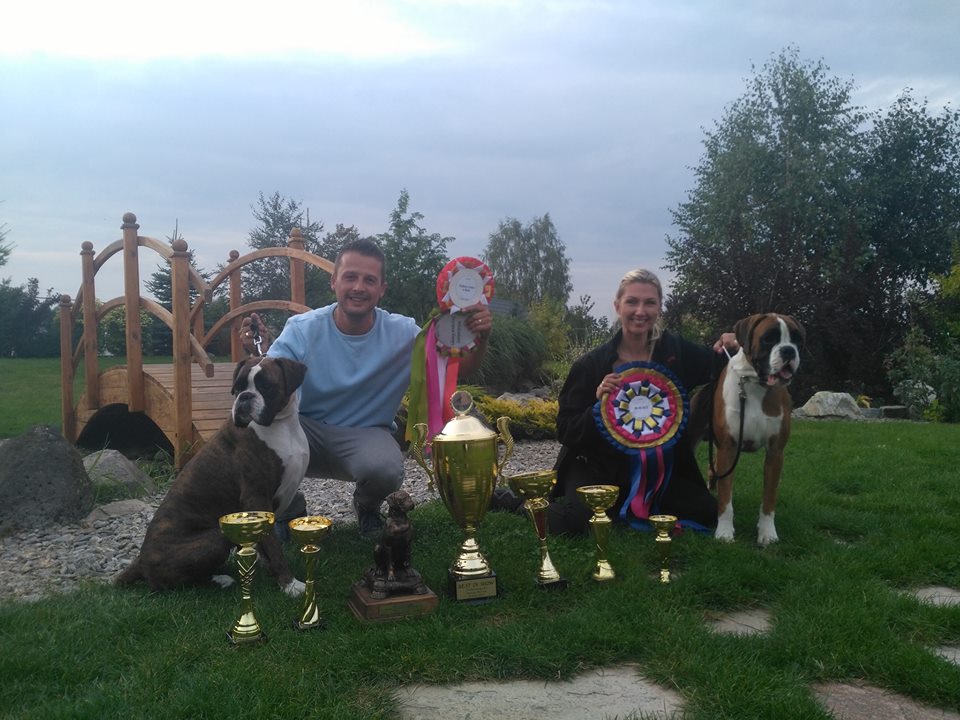 Naša chovateľská stanica vznikla v roku 2014. Celé to však začalo približne v roku 1990. Ako dvanásťročnej mi rodičia dovolili ísť na týždeň s mojou najlepšou kamarátkou k jej tete do Brna a tu som sa prvý krát stretla s predstaviteľom plemena nemecký boxer. Kamarátkina teta mala štvorročného zlatého boxera Algara, nad ktorého krásou a silou sa mi tajil dych. Algar bol mohutný pes s krásnou hruďou a predhrudím, mal kupírované uši i chvost a bielu náprsenku. Celé prázdniny som neprestávala žasnúť nad tým, že tak mohutný nebezpečne vyzerajúci pes je vlastne šašo v psom tele. Dokázal sa tváriť vznešene a hrdo a vzápätí ako totálna „trúba“… Tie prázdniny boli pre mňa smerodatné – zatúžila som po boxerovi. Dva roky som prehovárala rodičov, aby mi boxera kúpili. Márne. Po dvoch rokoch som však rodičov obmäkčila a so psom súhlasili, musel to však byť pes po kolená. Po moje kolená. A tak som bola 8 rokov majiteľkou sučky čierneho stredného bradáča. Túžba po boxerovi však zostala nenaplnená… K rozhodnutiu zaoberať sa chovom prišlo až v roku 2014, kedy sme s manželom kúpili dom po uznávanom chovateľovi nemeckých ovčiakov so 6 kotercami, čo mi umožnilo začať si plniť svoj sen. Čo sa týka plemena, rozhodnutie padlo prirodzene na boxera. Boxer má jedinečnú povahu…