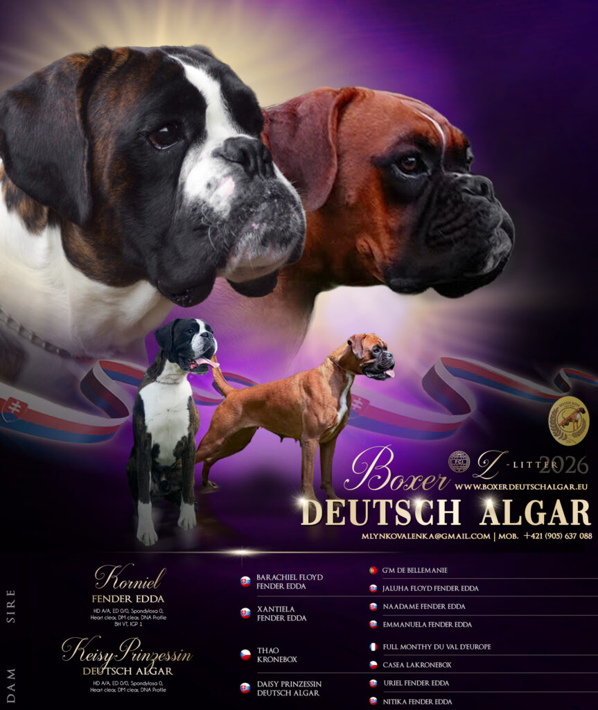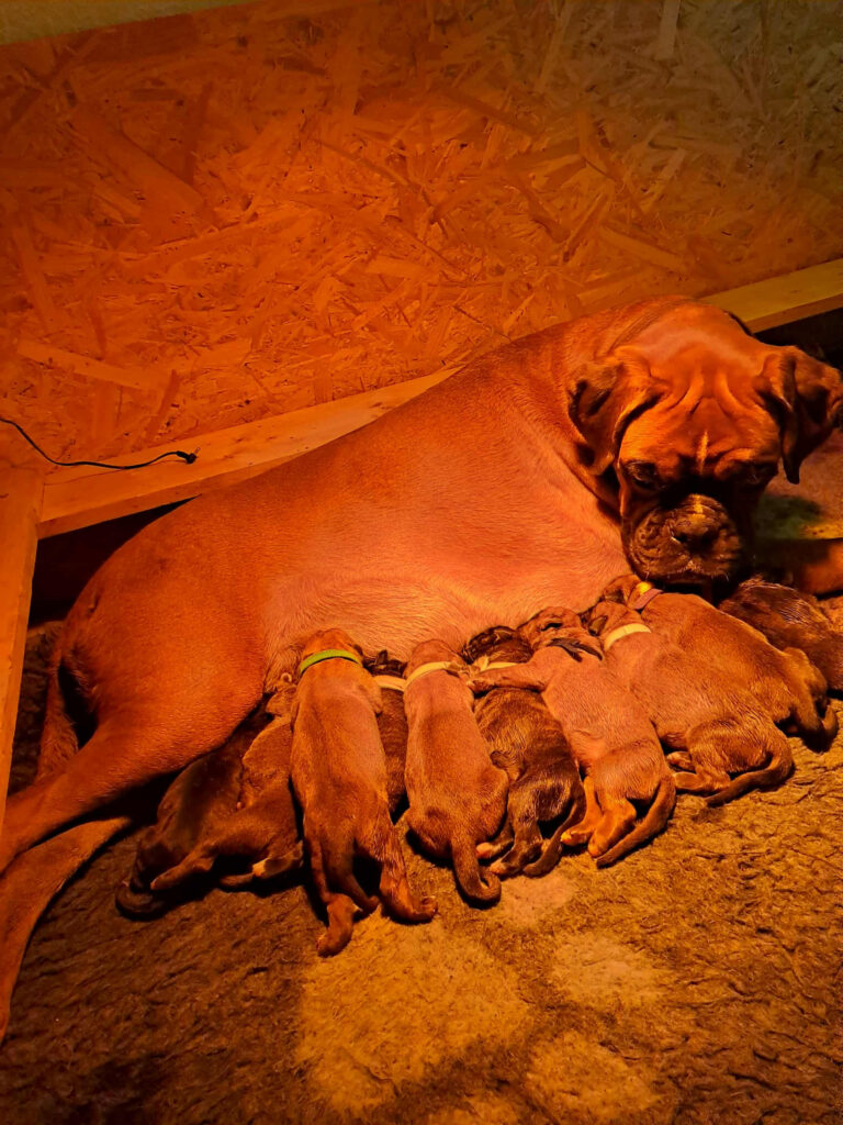 Oznamujeme priateľom a známym, že sa nám dňa 10.9.2025 zo spojenia BRUNO BOSS Boxrelay x ROSE PRINZESSIN Deutsch Algar narodilo 6 krásnych zdravých šteniat, z toho 5 pásikavých sučiek a 1 pásikavý psík.